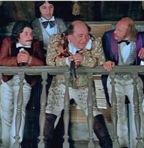 Также как в фильме «Обыкновенное чудо» я непременно хотел сделать роскошную лестницу на второй этаж. Гости, приезжие короли там, будут как Леонов опираться на неё и говорить: а мне здесь нравится. Впереди был золотой век. Я думал на всю жизнь.
