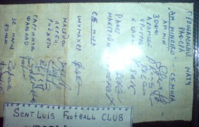 Этот матч всех звезд против команды «Америка Минейро» стал последним в истории футбола вообще. Это было 12 июля а на другой день Аден ушел в армию. АУТ! Аден в июле 1985 года ушел в армию, а Родриго собрал всё, что было и отвез в сад, на чердак. После этого раритеты Мифов стали добычей многочисленный мышей. Сохранилось ли то, что было запечатано в металлических банках. Процент-два не более. Но и это представляет интерес для историков всего мира.
