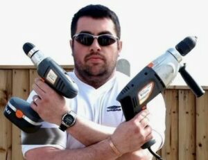 вооружился двумя перфораторами. Видуха такая — как терминатор, в каждой руке по стволу. Вставил сверла, самые большие, какие нашел. Сначала сверлил бетон сверлом поменьше, потом рассверливаю дыру сверлом побольше.